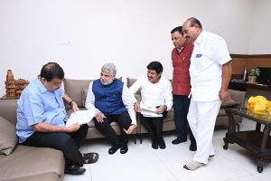 హిందు 9 న్యూస్ /వికారాబాద్ ;వికారాబాద్ జిల్లాలో రోడ్ల అభివృద్ధికి నిధులు మంజూరు చేయాలని కోరుతూ శుక్రవారం రోజు కేంద్రమంత్రి నితిన్ గడ్కరీ ని తెలంగాణ శాసనసభ స్పీకర్ గడ్డం ప్రసాద్ కుమార్ తోపాటు తాండూర్ శాసనసభ్యులు బుయ్యని మనోహర్ రెడ్డి కలిసి విజ్ఞప్తి చేశారు. తాండూర్ నియోజకవర్గ లోని రోడ్లతో పాటుగా మన్నెగూడ వికారాబాద్ తాండూర్ జహీరాబాద్ బీదర్ రోడ్డు అలాగే తాండూర్ పెద్దెముల్ కోటపల్లి మోమిన్పేట్ సదాశివ పెట్ రోడ్డు మారేపల్లి మదనంతాపూర్ మరియు రొంపల్లి బంటారం రోడ్డు రోడ్లతో పాటు గా కోకట్ మోమిన్ పేట్ బుద్యేరా రోడ్డు వికారాబాద్ మోమిన్పేట్ రోడ్డు కొత్తగాడి బంటారం కేసారం తురుమామిడి మరియు ఇతర రోడ్ల అభివృద్ధి కోసం ప్రజల సురక్షితమైన ప్రయాణం కోసం నిధులు మంజూరు చేయాలని కేంద్రమంత్రికి విజ్ఞప్తి చేశారు. కలిసిన వారిలో సీనియర్ నాయకులు ఉత్తంఛన్ మాణిక్ రెడ్డి తదితరులు ఉన్నారు.