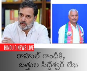 రాహుల్ గాంధీకి బహిరంగ లేఖ రాసిన- హిందు బీసీ మహాసభ జాతీయ అధ్యక్షులు బత్తుల సిద్దేశ్వర్ పటేల్