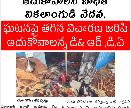 దివ్యాంగులువికారాబాద్సామాజిక వార్తలు అగ్నికి ఆహుతైన వికలాంగుడి టెంట్ హౌస్ -ప్రభుత్వం ఆదుకోవాలని బాధిత వికలాంగుడి వేదన, By Kura Yadaiah Journalist March 25, 2026March 25, 2026